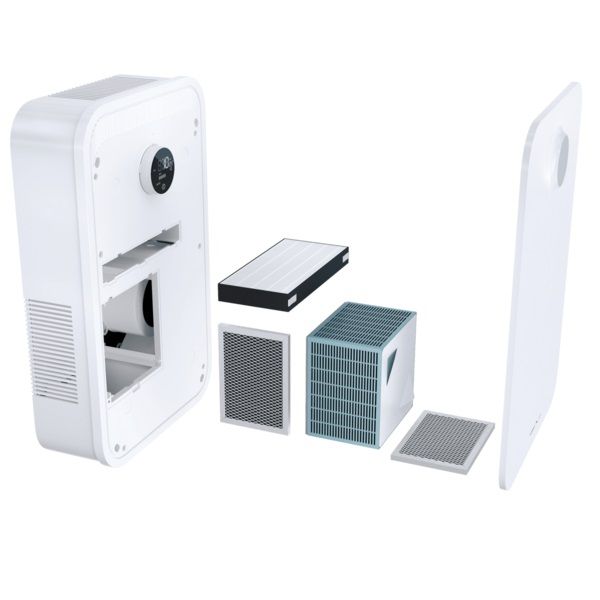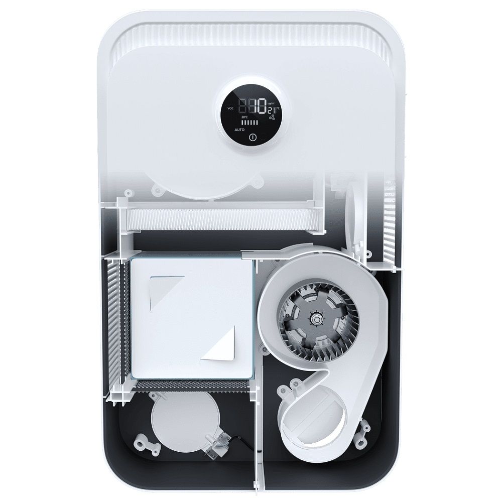Дисплей и пульт управления эргономичны: панель дисплея может поворачиваться с шагом 90°, что облегчает монтаж в любом положении и настройку. Контроль концентрации летучих органических веществ (VOC) помогает своевременно реагировать на ухудшение воздуха, а датчик загрязнений регулирует интенсивность вентиляции.